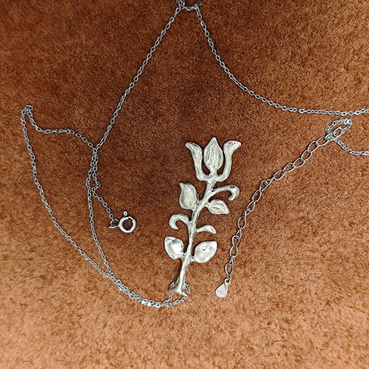 Lost wax casting handmade sterling silver flowering plant pendant necklace